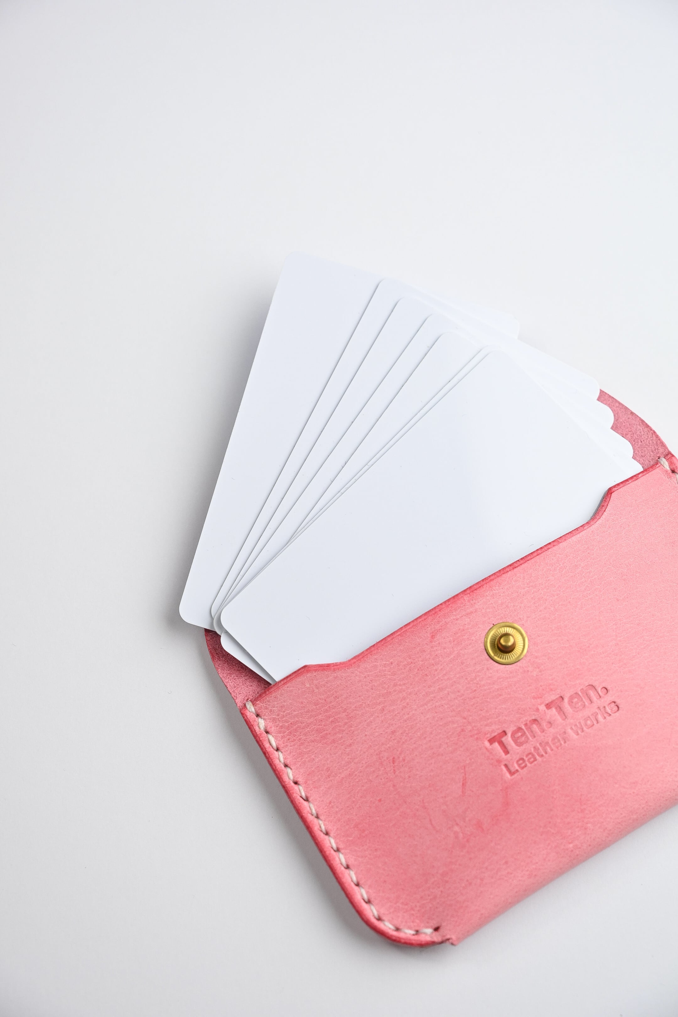 ▶︎▷ イタリアンレザー 『SIBILLA Liscio / シビラ リスシオ』ホワイトワックス仕上げのピンクのレザーを使用したカードケースです。シンプルな作りですがカード10枚ほど収納可能です。意外と行き場の困るサブカードの収納に^ ^